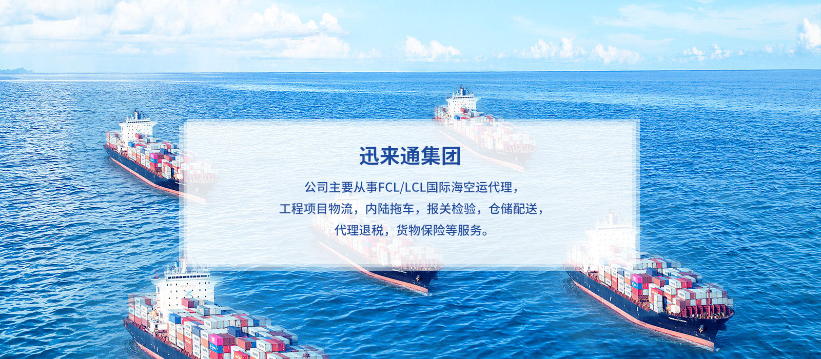 “海運(yùn)”是迅來通的主營業(yè)務(wù)之一。 公司多年來一直致力于海運(yùn)集裝箱進(jìn)出口業(yè)務(wù),與多家船公司建立了良好的戰(zhàn)略合作伙伴關(guān)系,并與世界各大港口代理及國內(nèi)主要城市代理建立了互助合作伙伴關(guān)系。 經(jīng)過多年的發(fā)展,公..
